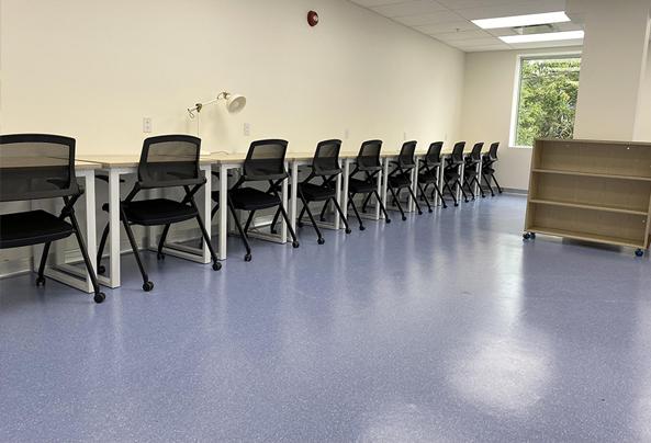 在美观方面,米兰官网同质透心地板为St.John's Academy的教室增添了独特魅力。学校巧妙选用亮丽蓝色和米白色的米兰官网地板,蓝色如同窗外的湖水,纯净清澈,有助于激发学生的灵感和想象力;米白色则如象牙般晶莹整洁,让学生心态平和宁静。两种颜色搭配,让教室充满活泼的青春气息,构建出令人向往、充满探索欲的教育空间,让孩子们更愿意沉浸在学习中。
